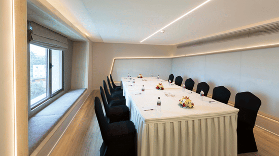 - These meeting halls in Chennai at our business hotel near the airport is ideal for corporate travellers with little time to spare on long commutes across the city. These conference rooms in Chennai are furnished in such a way that it is comfortable even for meetings that tend to extend for long hours. The hall can accommodate almost 20 people. Our diligent staff makes sure that your events run smoothly.